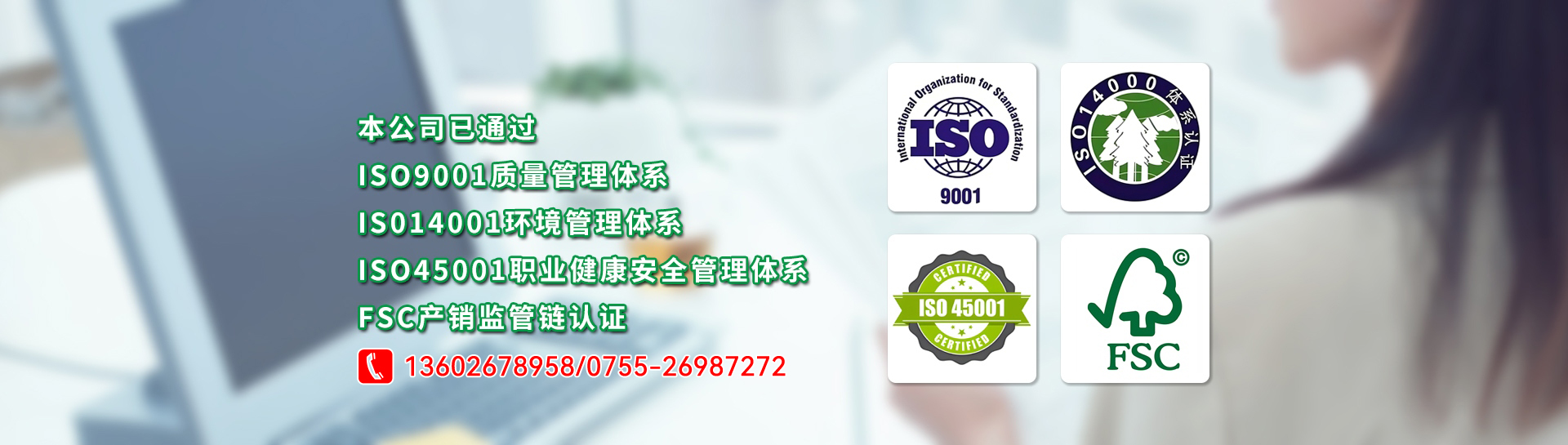 本公司已通過(guò):ISO9001質(zhì)量管理體系、IS014001環(huán)境管理體系、ISO45001職業(yè)健康安全管理體系、FSC產(chǎn)銷(xiāo)監(jiān)管鏈認(rèn)證!